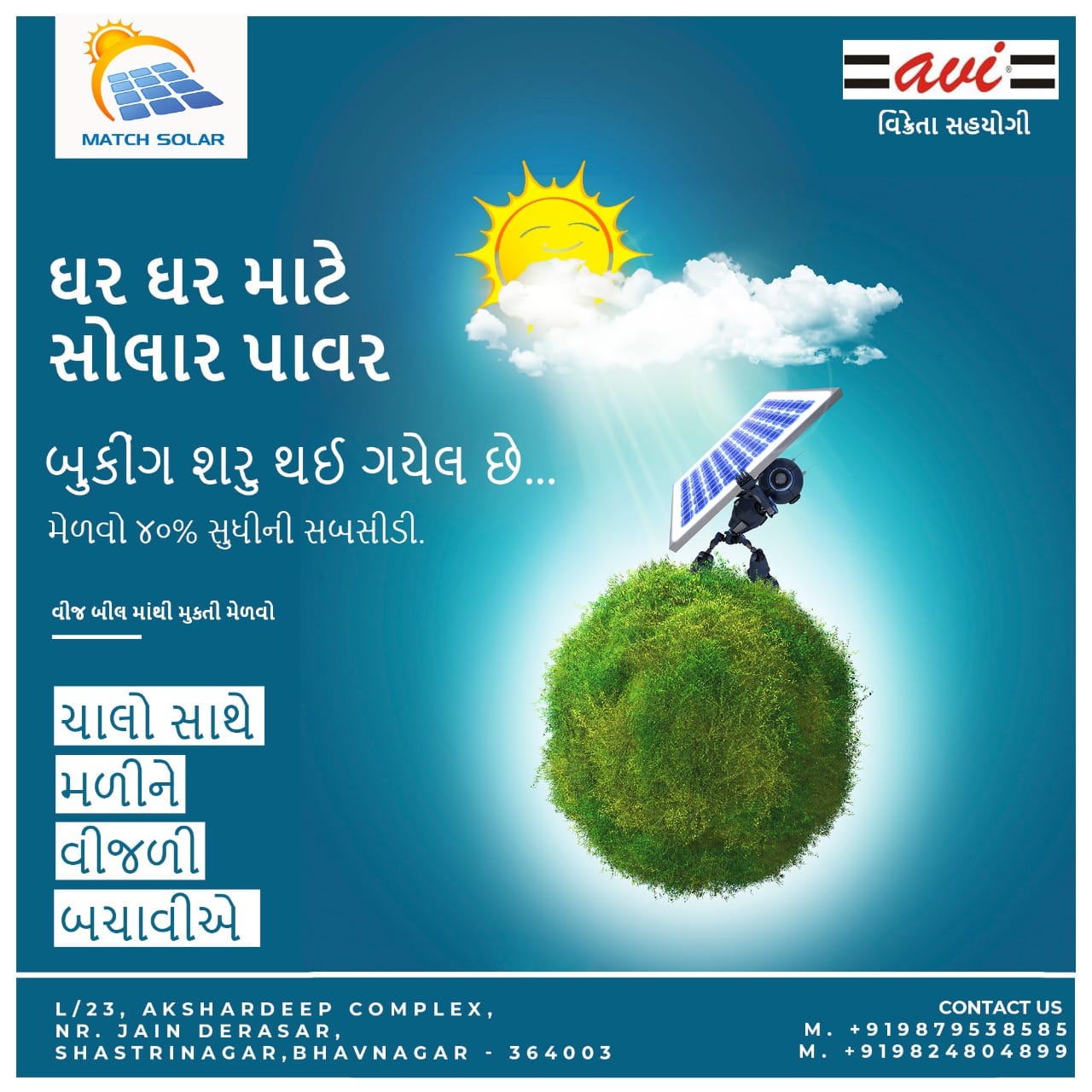 Match Solar system is a 20 years old company in Bhavnagar. they provide solar rooftop & solar related services. their product price range starts from Rs.70,000 around.