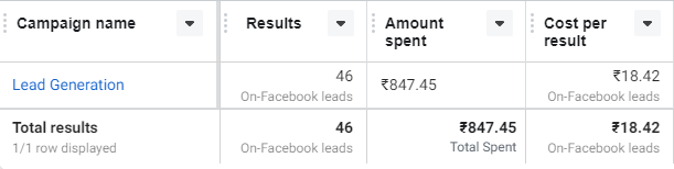 We ran lead genration campaign on Facebook & Instagram with detailed targeting. we gave them 46 interested leads within a month at just Rs.847.45